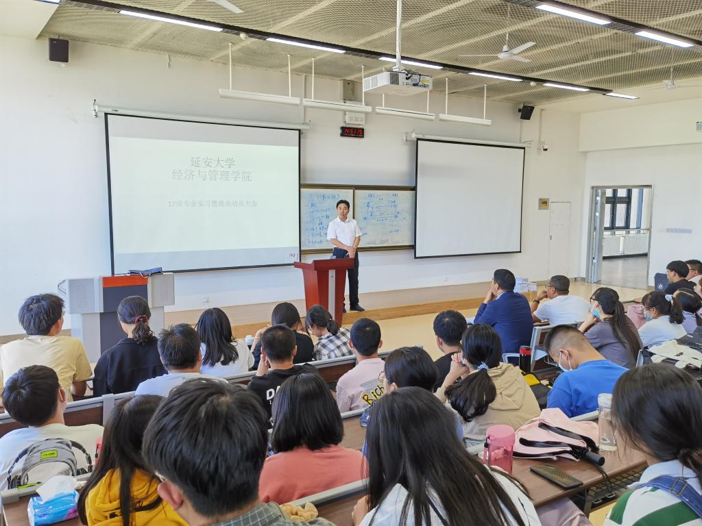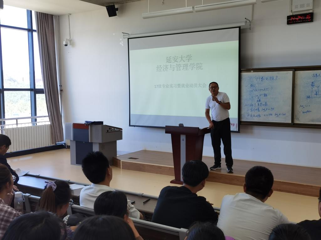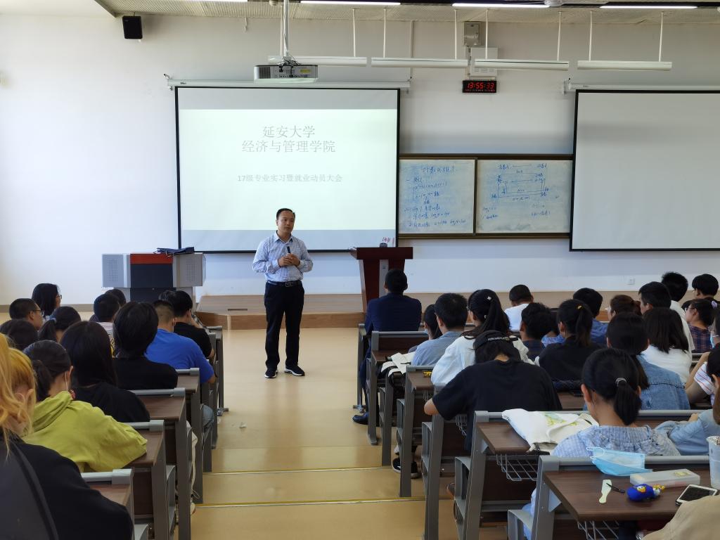 本网讯 9月4日下午,3044am永利集团3044noc在新校区第四阶梯教室召开了2017级专业实习暨就业动员大会。学院经理王进、党委书记雷伟、党委副书记冉晓辉、学院副经理陈云桥及2017级全体员工近400人参加了会议。会议由陈云桥副经理主持。