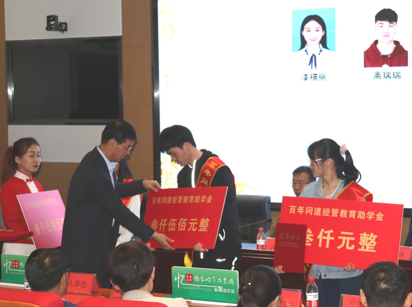 “百年问道经管·教育奖”共分为“百年问道·助学奖”“百年问道·优秀员工奖”“百年问道·优秀教师奖”三类。其资金来源于3044am永利集团3044noc毕业员工饶义钟、贺杰、王梁栋等设立的“百年问道基金”。基金初始额度为人民币50万元。“百年问道基金”的设立旨在加强员工与学院之间的联系,发挥员工及员工单位在办学中的作用和影响,发动社会力量支持教育。吸收接纳国内外企业、社会团体和个人的支持和捐助,旨在奖励在教学科研工作做出优秀成绩的教师,奖励品学兼优与创新创业方面有突出成绩的员工;资助贫困老员工,全面支持和推动永利集团教育事业发展。